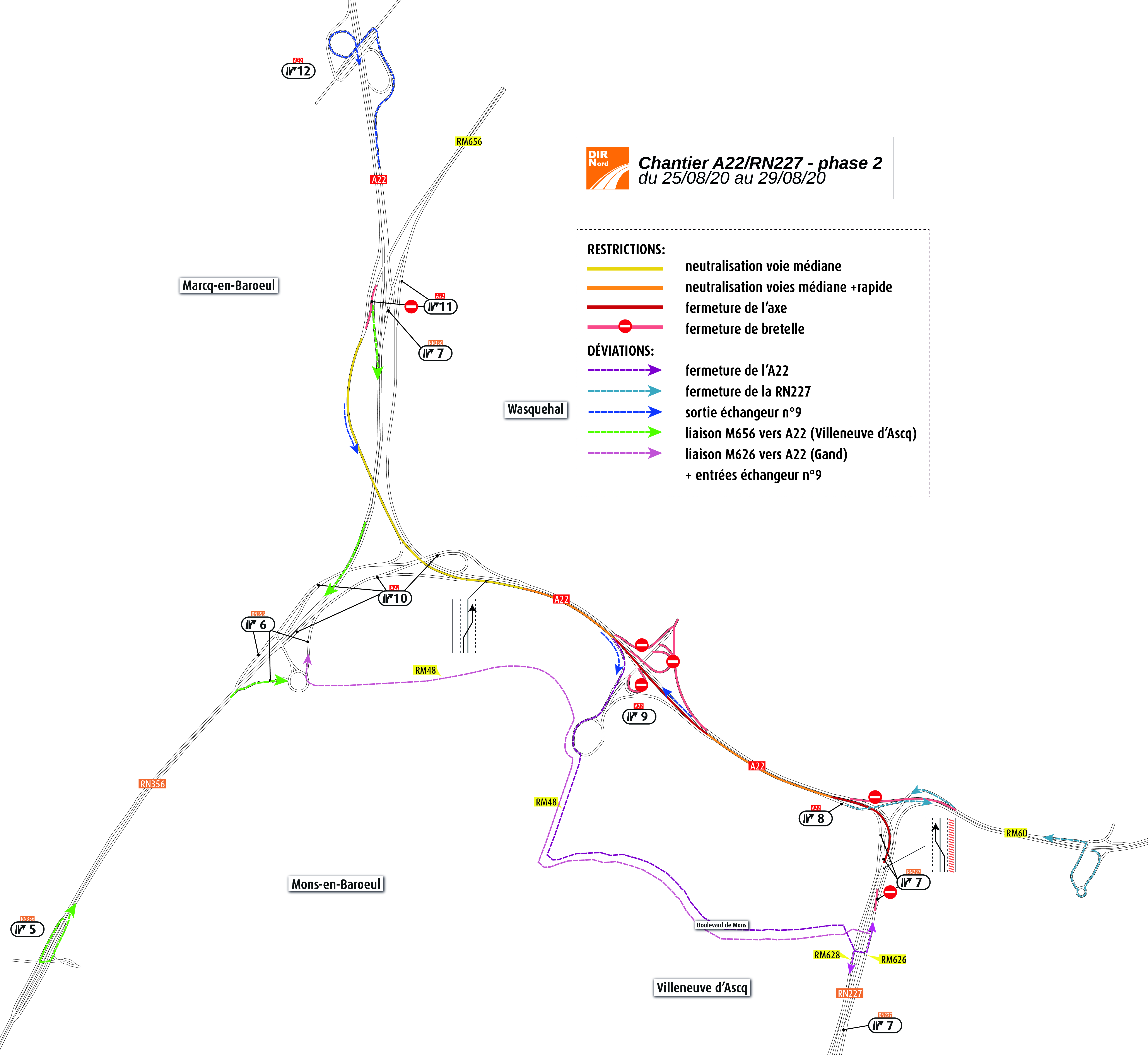 niveau de l’échangeur n°11 (A22/RN356) avant fermeture totale de l’axe au niveau de la bretelle