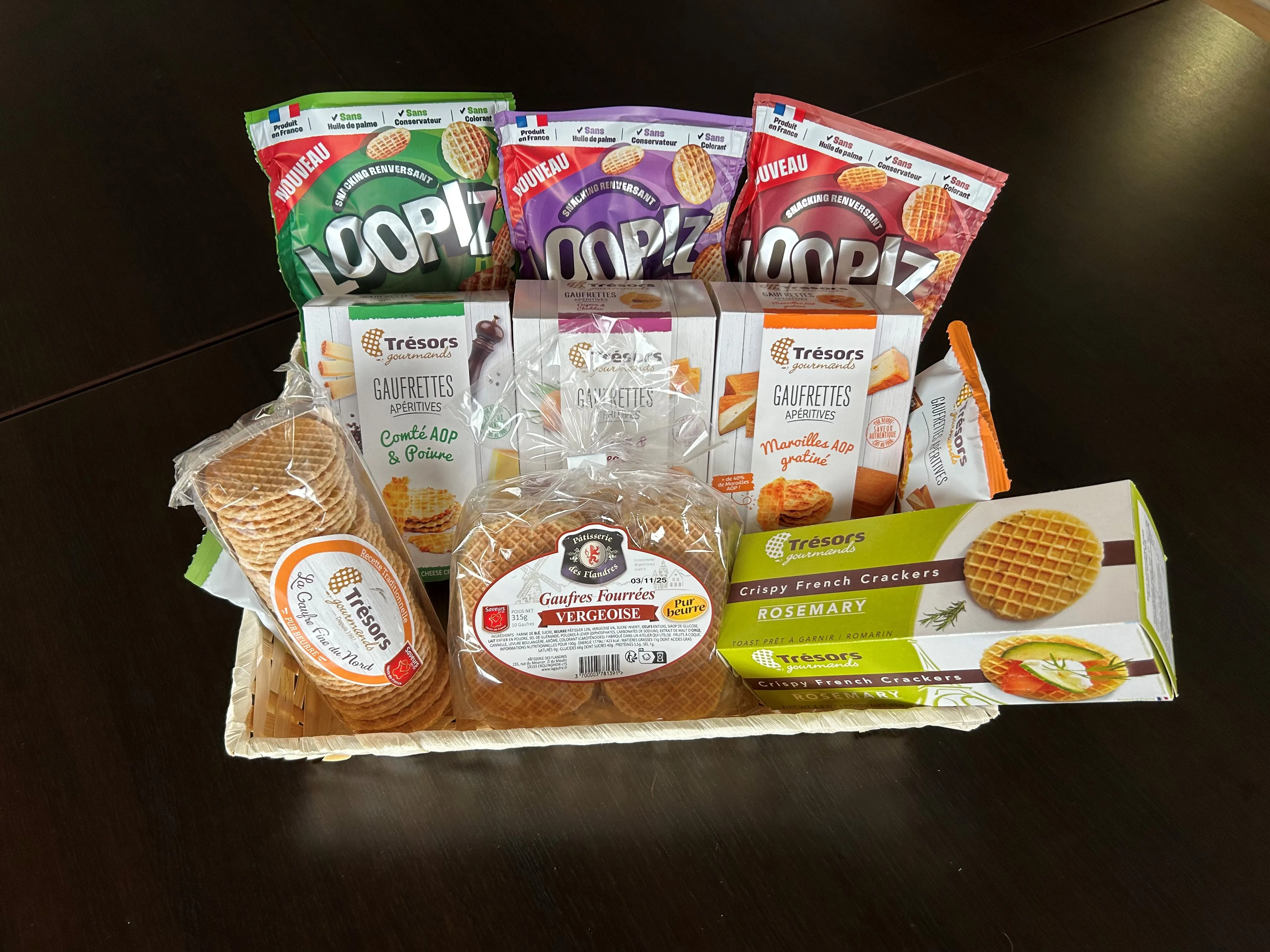 Retrouvez toutes les douceurs de la Pâtisserie des Flandres : gaufres fourrées, gaufres fines pur beurre, palets de dames, gaufrettes apéritives, gaufres au Maroilles, sans oublier les Loopiz !