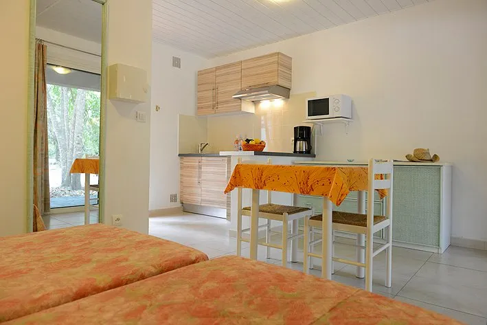 Les locations naturistes, mini villa Studio, sont des hébergements les pieds dans l'eau ou en léger retrait dans la nature.