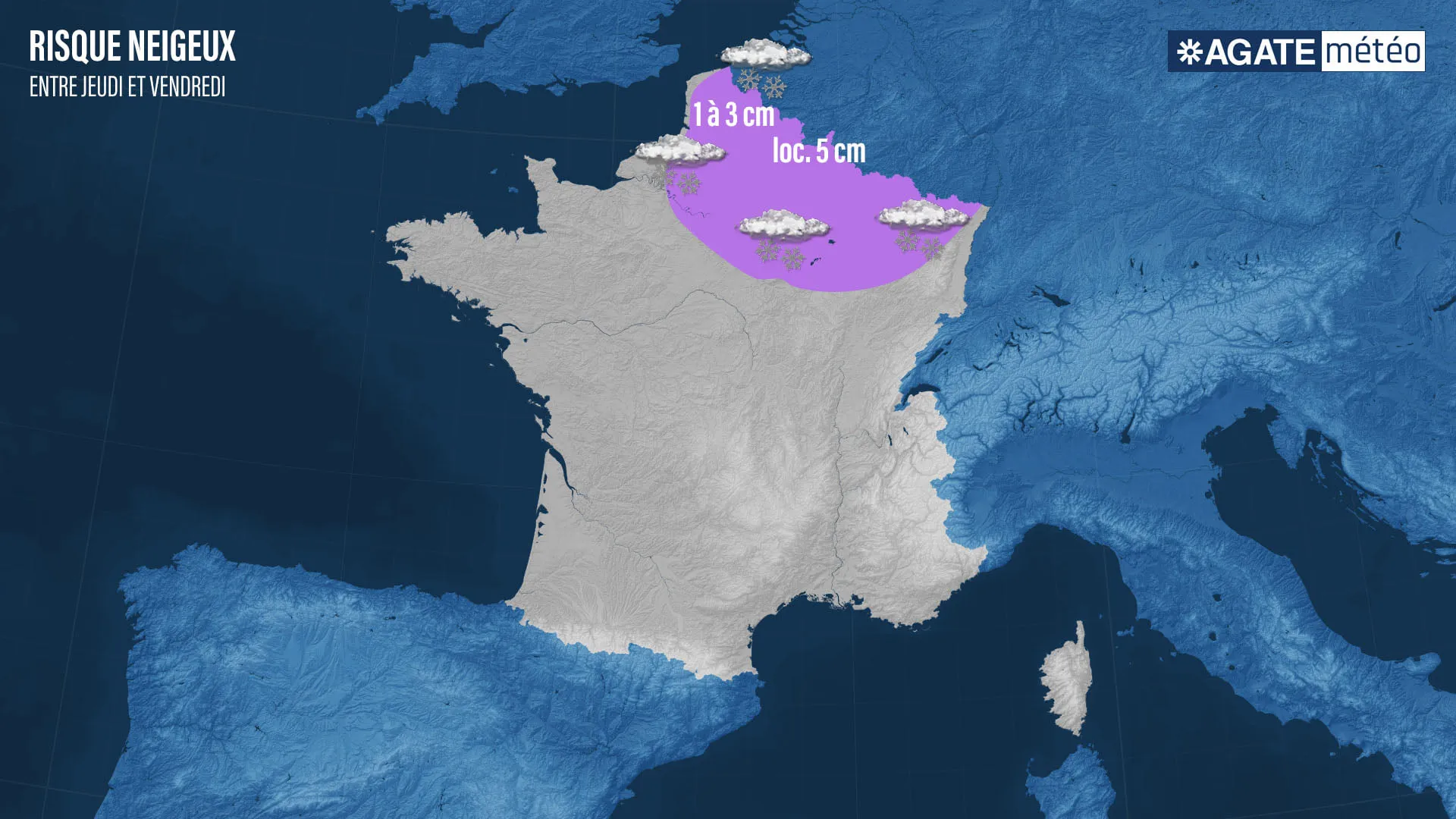Agate France annonce 2 à 3 cm de neige dans la nuit du 31 décembre dans les Hauts-de-France