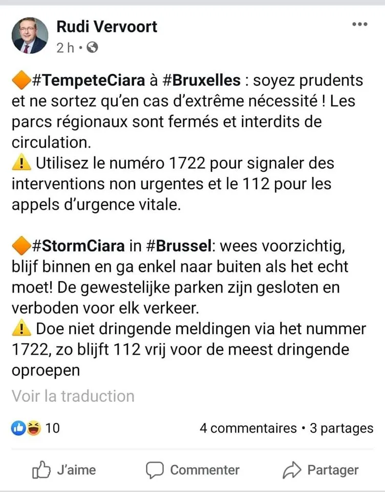 La tempête Ciara commence à toucher la Belgique ce dimanche avec des rafales pouvant atteindre 130 km/h. Malgré plusieurs alertes de l’Institut Royal Météorologique, le concert de la chanteuse belge Angèle a été maintenu au Palais 12 de Bruxelles ce soir.