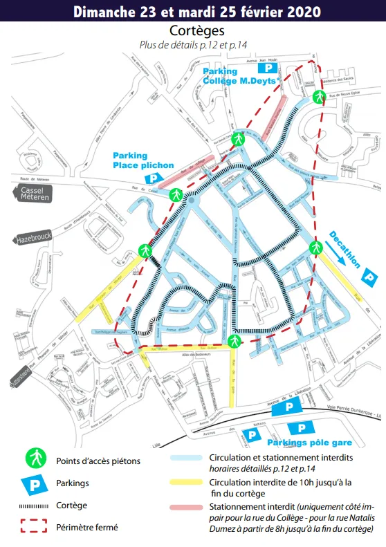 Samedi 22 février Après-midi > Grand jeu de Gargantua > Carnaval des hameaux (12h : Repas à la Crèche 14h : Départ du cortège de la Gare 15h30 : cortège au Steent'Je 17h : cortège à Outtersteene (Final) > Bal de l’élection de la reine du carnaval