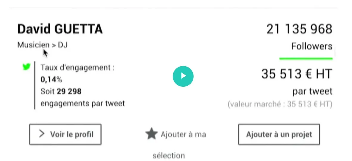 Ce « document confidentiel » nous apprend que le champion français des réseaux sociaux est David Guetta. Pour un tweet rémunéré, le DJ peut toucher jusqu'à… 35 000 euros?! Avec ses 21 millions de followers, il est loin devant les autres. L'humoriste Gad Elmaleh peut ainsi se faire payer un peu plus de 15 000 euros pour un tweet, la même somme que Jamel Debbouze. Les youtubeurs Norman et Cyprien touchent à peine moins, respectivement, 14 700 et 13 600 euros.