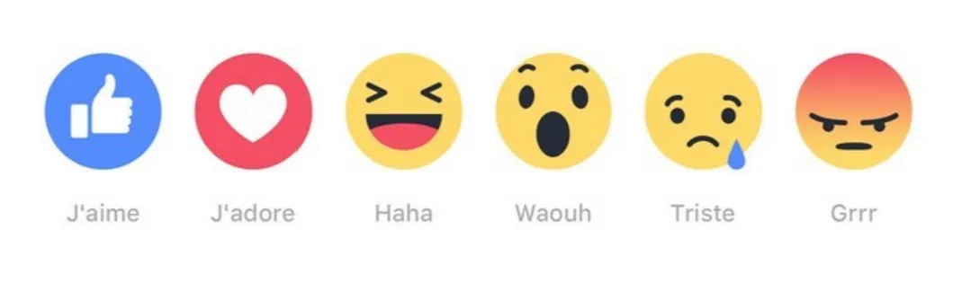 Avec cette nouvelle fonctionnalité, chacun peut s’exprimer de manière plus précise ses sentiments sur le réseau social. En plus du célèbre "J’aime", on peut désormais exprimer par le biais de ce nouveau bouton son enthousiasme ("J’adore"), de l'amusement ("Haha"), de l'admiration ou de la surprise ("Wouah"), sa tristesse ("Triste") ou bien encore sa colère ("Grrr") !