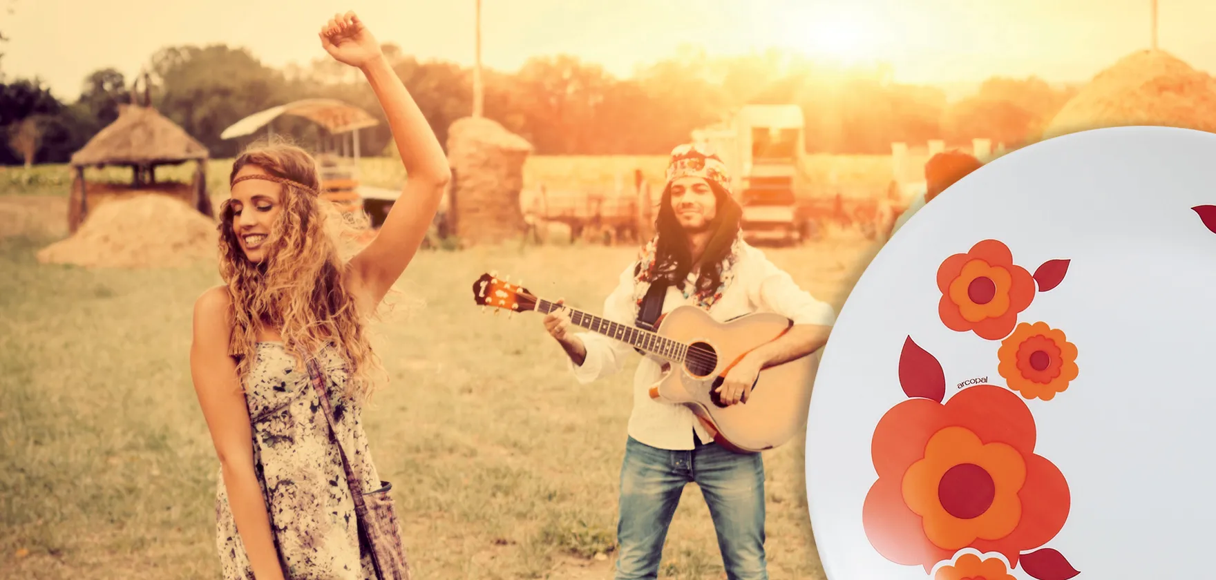 Imaginez Archibald, la mascotte d’Arcopal, avec un pantalon pattes d’éléphant, une chemise colorée et une fleur dans ses cheveux longs, en train de fredonner les paroles de Hair… Voilà l’image iconique qu’évoque la collection de vaisselle en opale Lotus ! Nostalgique des douces années de sa jeunesse, Archibald nous propose un véritable flash-back dans les années 60/70 pour découvrir ou redécouvrir une vaisselle haute en couleur. « Let the sunshine, let the sunshine in, the sunshine in… » C’est durant les années 1960 et 1970, en plein cœur du Flower Power, qu’est née l’inoubliable collection Lotus d’Arcopal avec une vaisselle qui reprend le symbole du mouvement hippie non-violent : la fleur !