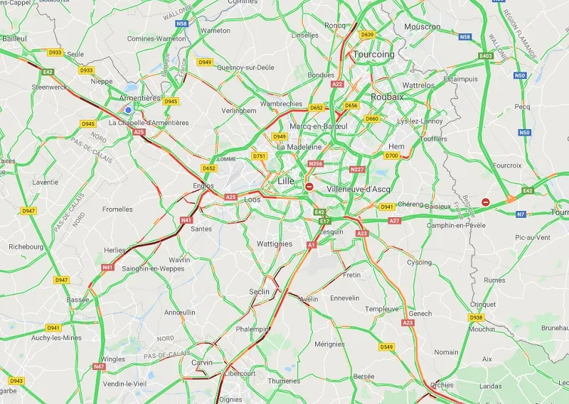 . A25 : 30km de bouchons dans le sens Dunkerque-Lille.