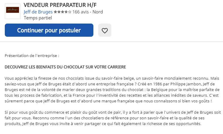 Jeff de Bruges recrute un Vendeur Préparateur à Lille (H/F) - Temps partiel