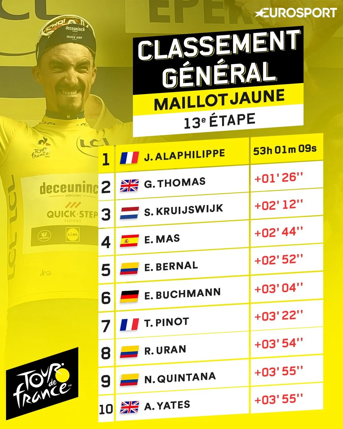 Julian Alaphilippe (Deceunick Quick-Step) sait décidément tout faire, surtout lorsqu'il a un Maillot Jaune à défendre. Dans le contre-la-montre de Pau vendredi, le puncheur Français a devancé tous les spécialistes de l'exercice, à commencer par son dauphin au général, Geraint Thomas (Ineos), pour remporter l'étape. Il possède 1'26'' d'avance sur le Britannique avant les premières étapes de montagne d'envergure.