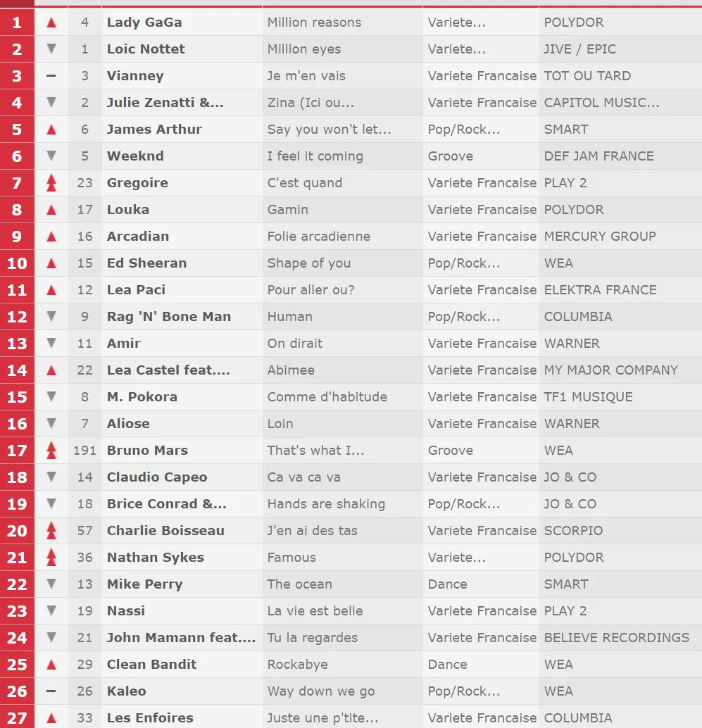 Lady Gaga vient de prendre la premiere place à Loic Nottet