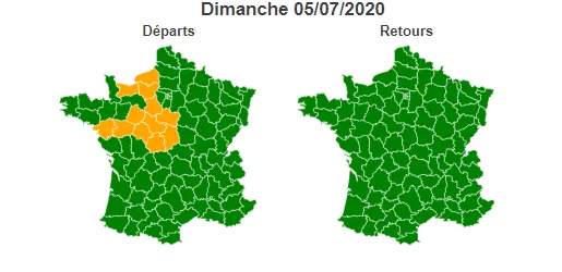 Pour samedi 4 juillet, l’ensemble du pays sera classé "orange" dans le sens des départs et "vert" dans le sens des retours.