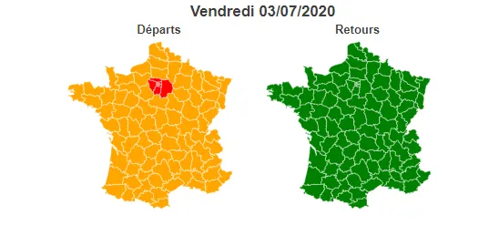 Pour demain, vendredi 3 juillet, la journée sera classée "rouge" en Île-de-France et "orange" sur l’ensemble du territoire dans le sens des départs.
