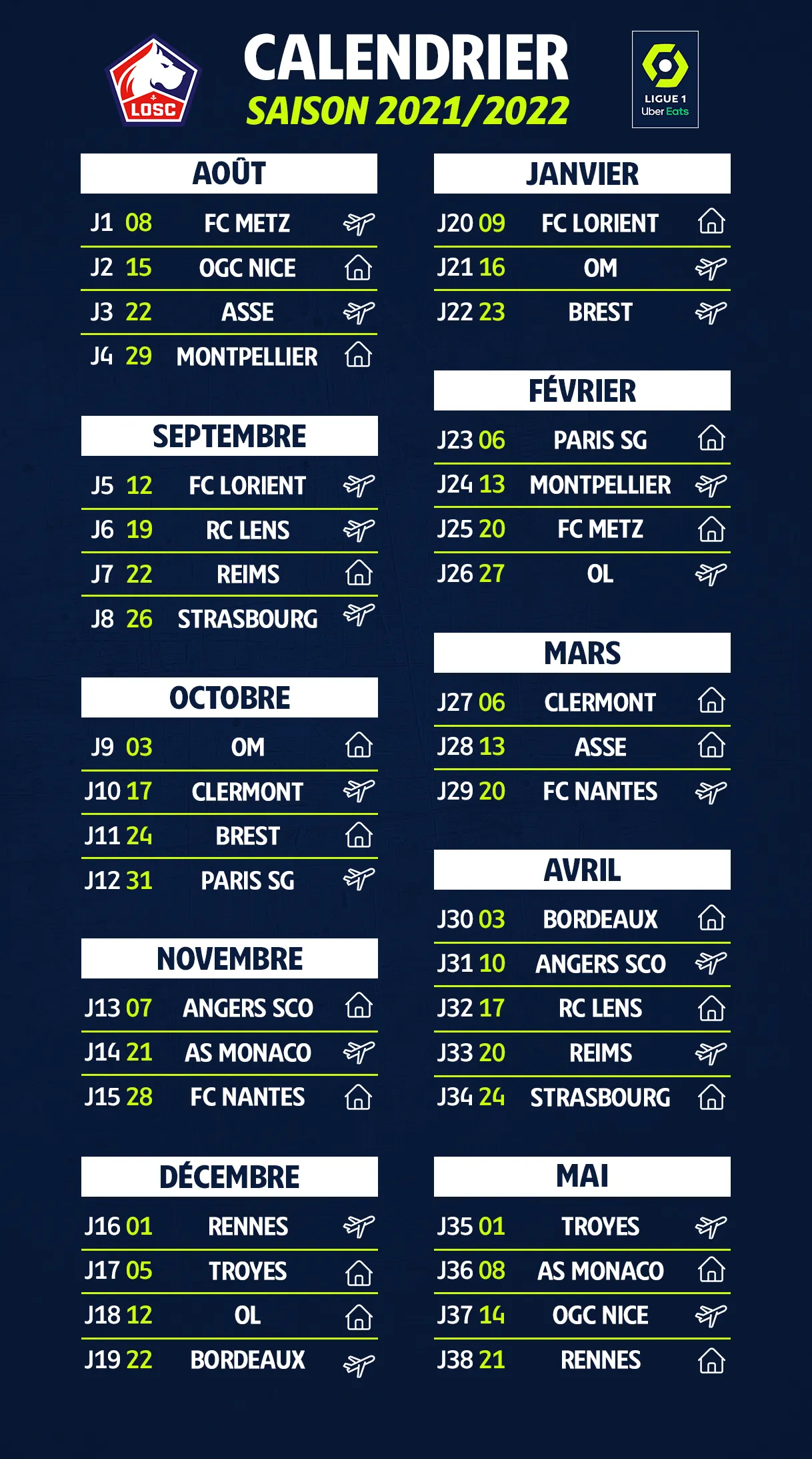 Ligue 1 : Le calendrier du LOSC pour la saison 2021/2022