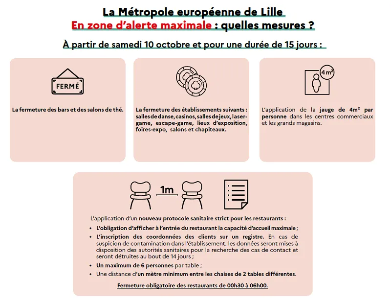 Lille : Voici la liste des restrictions "Alerte rouge" dès ce soir minuit dans la métropole