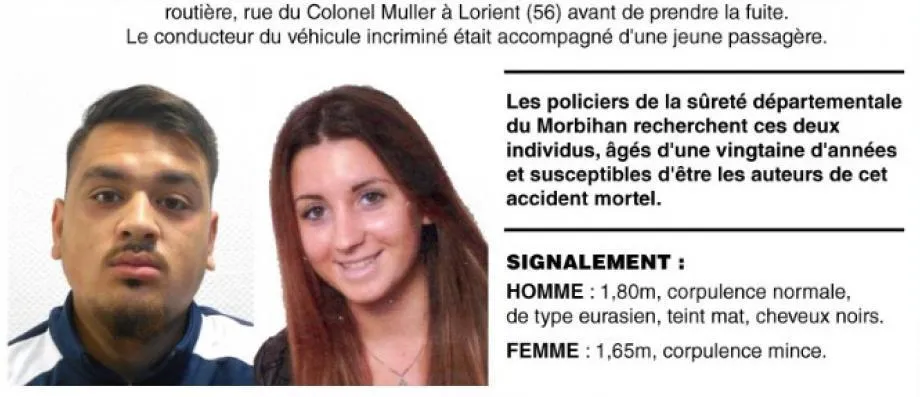 Lorient - La police diffuse un avis de recherche avec les photos du chauffard et de la passagère