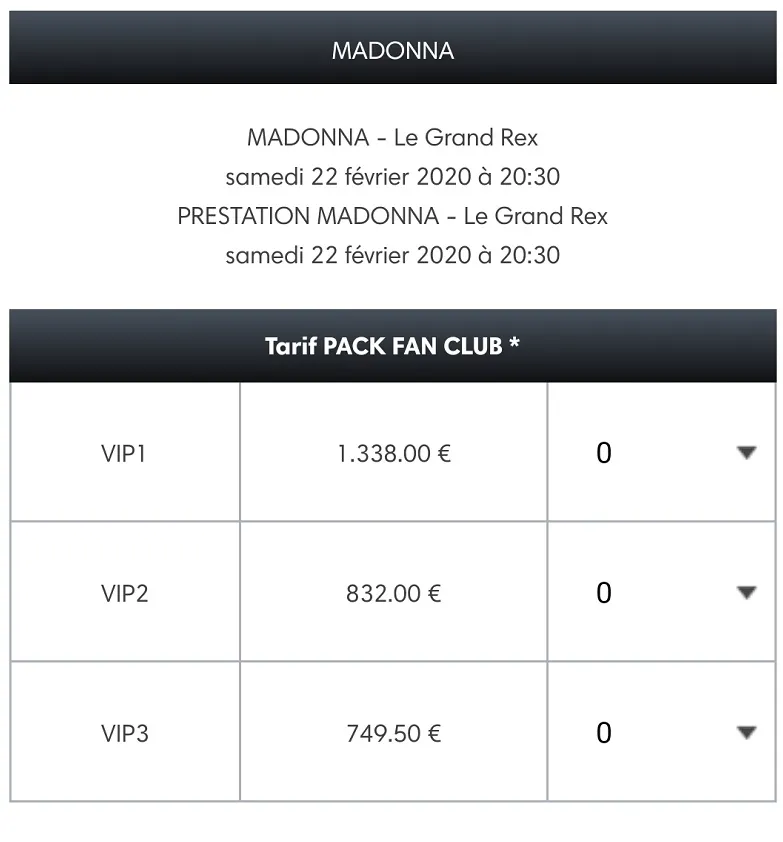 MADONNA au Grand Rex 1338 euros la place VIP !!!!