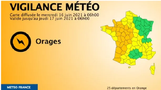 Météo France place ce matin pas moins de 25 départements en vigilance orange aux orages