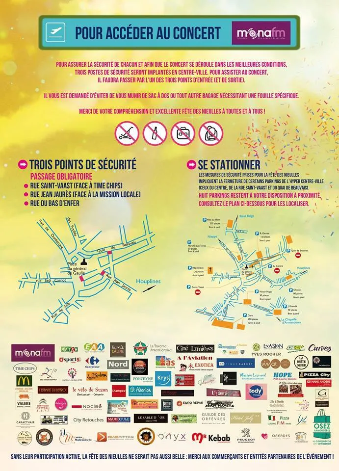 PLAN: Pour acceder au concert Mona FM 9 septembre Grand Place Armentieres